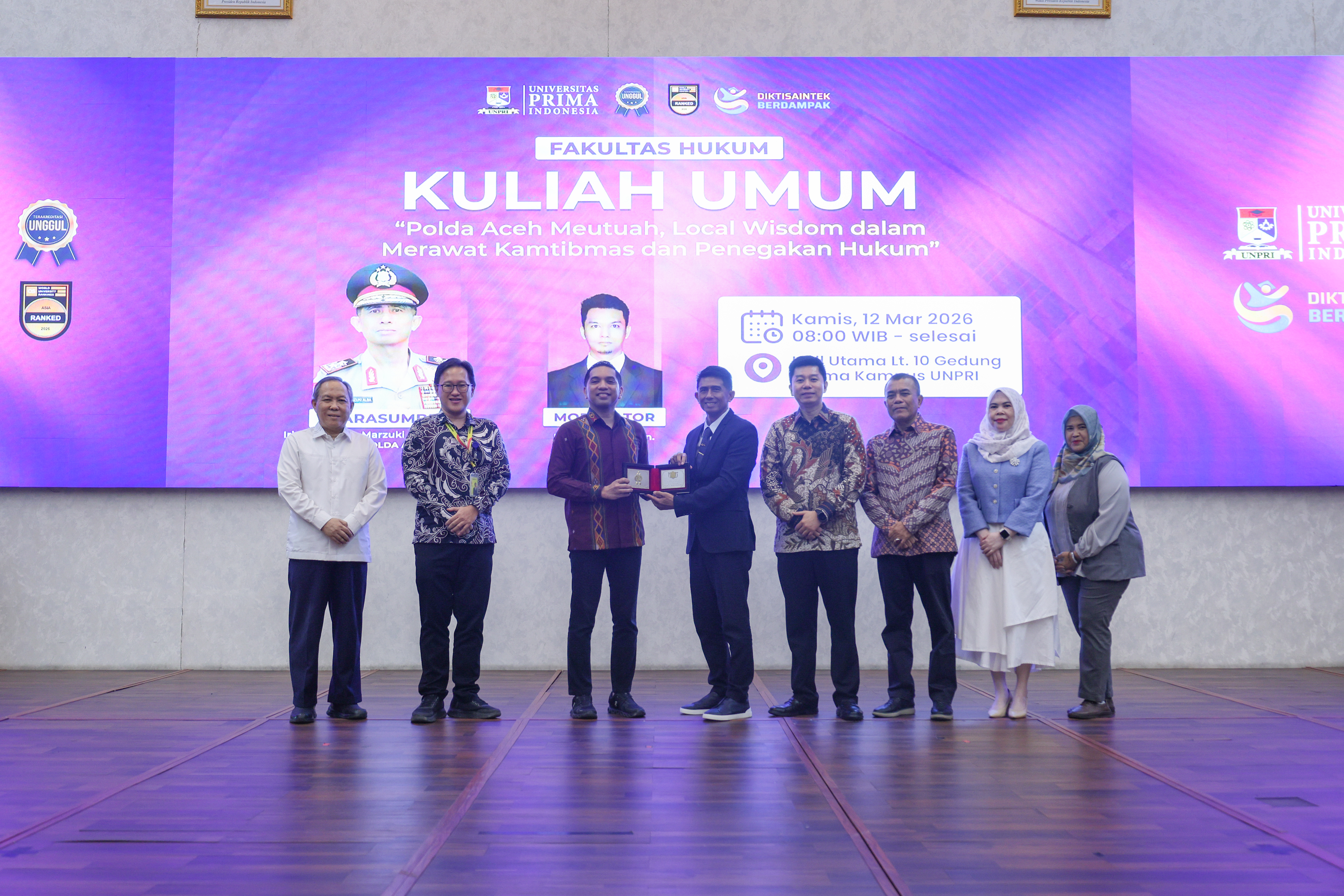 棉兰 – 已确立其作为苏北省最佳私立大学地位的印度尼西亚普里玛大学(UNPRI)于 2026 年 3 月 12 日(星期四)举办了题为“亚齐警署:维护治安与法律执行中的地方智慧”的公开课。作为顶尖教育机构,UNPRI 不断强化其教学质量,UNPRI 法学院的所有学位课程(从本科、硕士到博士)均已获得“优异(Unggul)”认证。