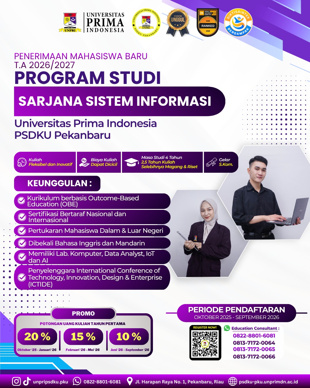 倍干巴鲁 (PEKANBARU) – 位列“亚洲世界大学排名”的印度尼西亚普里玛大学(UNPRI)正式开启其倍干巴鲁校区(PSDKU)2026/2027 学年的新生报名(PMB)。该管理学本科专业旨在培养就业就绪且具备全球市场竞争力的顶尖人才。